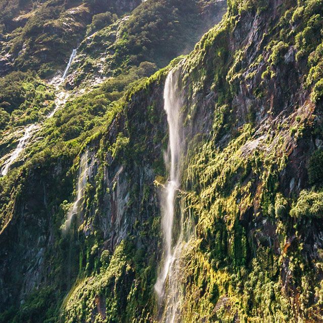 We were fortunate enough to drive the road to the Milford Sound just after a heavy rain and witnessed torrents of water streaming down from the glaciers above.